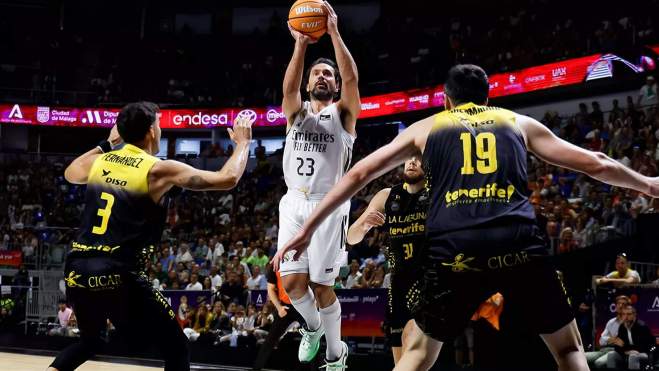 El Real Madrid acaba de lograr su sexta victoria consecutiva fuera de casa, y las 4 últimas han sido jugando como visitante. Esta vez ha sido contra La Laguna Tenerife, que ahora mismo es el quinto de la clasificación. Fue un duelo muy igualado, porque en el primer cuarto el quipo blanco se marchó perdiendo 16 - 18, en el segundo se fueron 25 - 33 al descanso. Pero en el inicio de la segunda parte, el equipo local volvió a ponerse por delante.