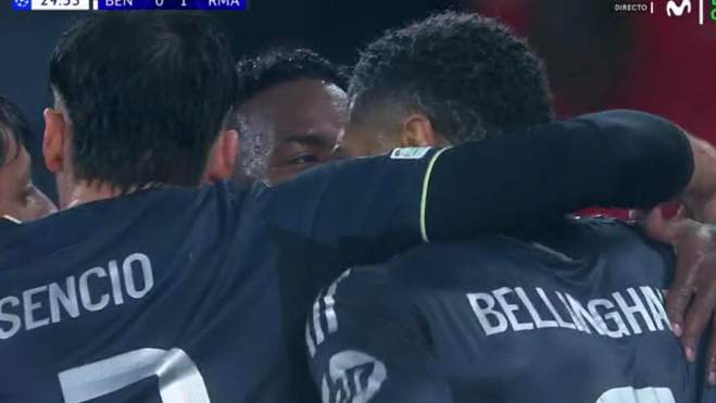 Kylian Mbappé adelantó al Real Madrid en el Estadio Da Luz. El francés hizo un remate impresionante a un centro de Raúl Asencio. El canario puso un balón medido espectacular que el astro de Bondy no desaprovechó. El testarazo fue potente y seco.