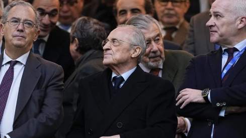 Florentino Pérez, en el palco del Santiago Bernabéu durante un partido reciente del Real Madrid.