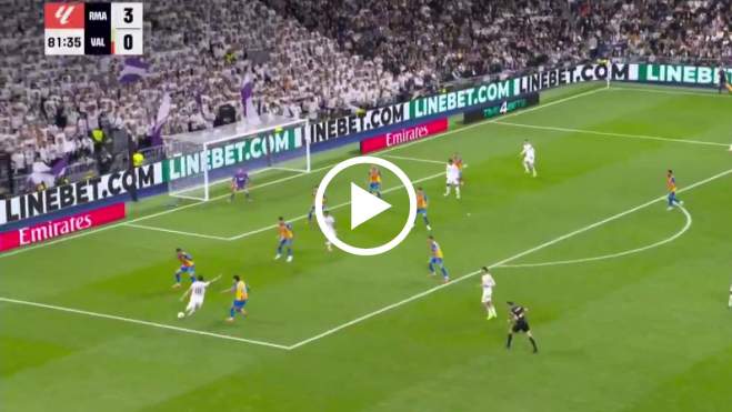 Álvaro Carreras hizo el definitivo 4-0 ante el Valencia. El lateral ha hecho su primer gol con el primer equipo del conjunto blanco y continúa demostrando un gran rendimiento con la elástica merengue.