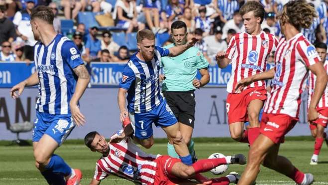 Claro que la alegría en el Atlético, como en la casa del pobre, duró bien poco. Porque el Alavés son tardó ni 10 minutos en poner la igualada en el marcador después de un penalti en la que Tenaglia era arrollado por Sorloth cuando el futbolista de los vitorianos iba a recibir el balón en el área pequeña. No falló desde los once metros Carlos Vicente.