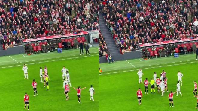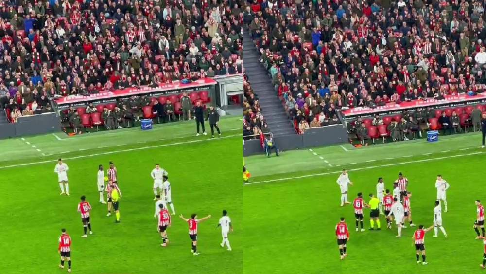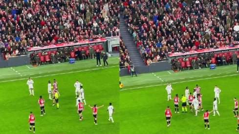 Fue en un momento en el que hicieron una entrada a Mbappé y se quedó en el suelo protestando con la grada presionando. Los jugadores del Athletic se acercaron a increpar al francés. Y en ese momento, Vinicius no lo dudó, salió corriendo para defender a su compañero.