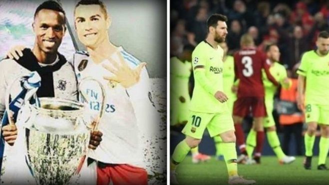 La imagen comparaba la edad de Cristiano (34 años), con la antigüedad del Barsa (119 años), dejando claro que en algo más de tres décadas de vida del luso, ha sido capaz de igualar la hazaña del Barça en Europa de toda su historia.