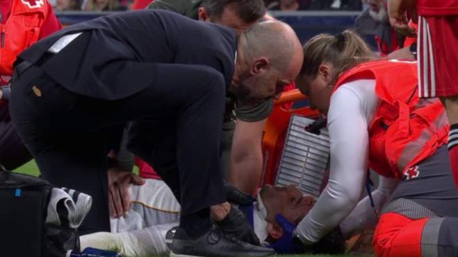 Más problemas para el Real Madrid. Raúl Asencio ha tenido que abandonar el césped del Santiago Bernabéu en el partido contra el Benfica por un duro choque fortuito con Eduardo Camavianga y, por desgracia, el central no ha podido dejar el campo por sí solo. Han tenido que intervenir los servicios médicos del club y el futbolista ha sido retirado mediante una camilla tras dar un gran susto, al haber estado durante unos minutos doliéndose en la hierba. El golpe que ha recibido ha sido en la zona de los cervicales y todo hace indicar que podría ser otra lesión para el cuadro de Álvaro Arbeloa.