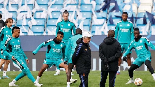 El belga se ve con confianza y Ancelotti no ha dudado en meterle dentro de una terna en la que están los habituales con los que suele ensayar en los entrenamientos: Benzema, Modric, Kroos, Alaba, Casemiro, Rodrygo y Valverde. A ellos se les suma ahora Hazard, pero todo dependerá de cómo vaya el partido.