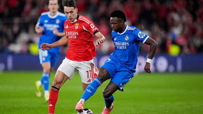 El Bnefica comenzó mejor, pero el Madrid, de menos a más, fue haciéndo con la batuta del partido, hasta tener muchas ocasiones, principalmente al final de la primera parte. Thibaut Courtois también tuvo que sacar una mano prodigiosa, reivindándose de nuevo como el mejor portero del mundo. Vinicius, Kylian Mbappé y Arda Güler pudieron adelantar al Madrid, pero la suerte no se cruzó entonces con los merengues.
