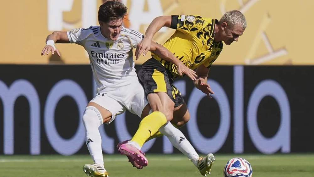 El conjunto de Xabi Alonso firmó un grandísimo inicio del primer tiempo y, ya a los 20 minutos, se imponía por dos goles a cero, obra de Gonzalo García y Fran García. Los 45 minutos fueron de control absoluto, pese a que el Dortmund había empezado con más arrojo, pero, tras encajar los goles, no fueron capaces de superar las líneas de los blancos.