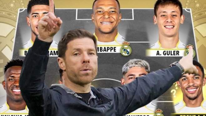 El Madrid podría jugar con una defensa de tres -Raul Asencio, Saliba y Antonio Rüdiger- con carrileros (Vinicius y Alexander-Arnold) en un centro del campo ocupado por Fede Valverde y Martín Zubimendi. En la delantera, Kylian Mbappé sería la referencia ofensiva del equipo mientras que Jude Bellingham y Arda Güler se ubicarían en las bandas izquierda y derecha, respectivamente.
