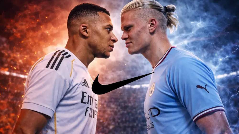 Kylian Mbappé, Erling Haaland y el logo de Nike.
