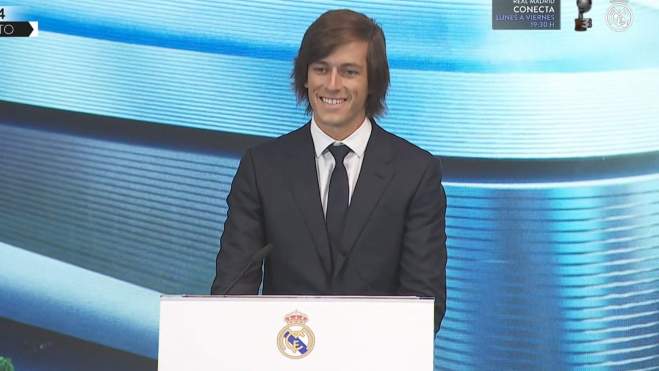 "No es fácil ahora. Primero, quería agradecer las palabras del presidente hacia mi familia. Quería continuar agradeciendo al Real Madrid la confianza depositada en mí para hacer posible la vuelta a la que fue mi casa durante 3 años. En la que salí siendo niño y vuelvo siendo un hombre. Tengo muchas ganas de poder vestir esta camiseta, es un orgullo poder defender este escudo por todo lo que representa, el mejor club del mundo. Prometo dar todo de mi parte al equipo para seguir creciendo y conseguir títulos juntos. Tampoco quiero olvidarme de lo más importante de mi vida: mi familia. Sin ellos no sería posible nada de lo que estoy consiguiendo. Sin olvidarme de mi gran apoyo incondicional: Ginés Carvajal y Jorge. Muchas gracias y Hala Madrid".