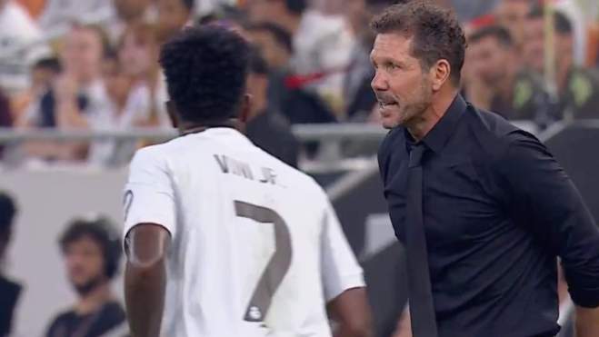 El Real Madrid está ganando por la mínima al Atlético (2-1)en la segunda semifinal de la Supercopa de España, con más de 20 minutos aún por jugarse y todo se tendrá que decidir durante el encuentro en sí, ya que no hay prórroga. Sin embargo, los goles de Fede Valverde y Rodrygo Goes, incluso el primero del Atlético por mediación de Aleksander Sorloth, han sido opacados por el encontronazo que ha tenido Diego Pablo Simeone con Vinicius Junior. Durante la primera parte, han sido una constante las conversaciones entre ambos y Movistar ha captado el momento de una de esas charlas.