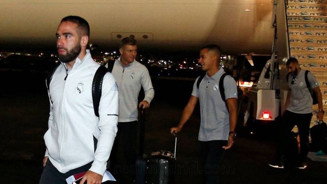 Los jugadores y el cuerpo técnico llegaron cansados del viaje, aunque se encontraron un buen recibimiento a las puertas del hotel mencionado en Beverlly Hills y con caras de ilusión ante la nueva temporada. Zinedine Zidane fue uno de los más aclamados por la afición madridista.