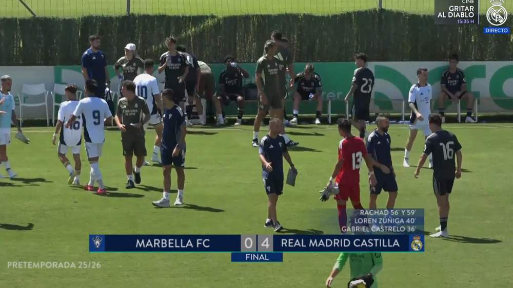 Los otros goles madridistas ante el Marbella FC los anotaron Gabriel Castrelo (36') y Loren Zúñiga (40').